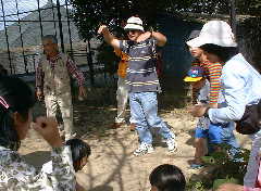 1999年10月17日日曜日、快晴。福山市の北部にある福山市立動物園で、「第8回全国一斉自然と親しむネイチャーゲームの会」を行いました。スタッフは、宮本、大津、小川葉子、神永、小笠原、妹尾、川上の7名。参加者は、子どもたちを含め、24名の合計31名で行いました。それに、中国新聞と産経新聞の記者の方が2名です。