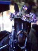 34)三頭立ての馬車です。先頭の馬はラバのような気もします。