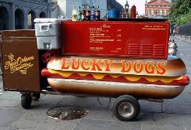 LUCKY DOGSというホットドック屋さんのようです。もっとも、LUCKY DOGSはニューオリンズの会社のようなのです。全国展開しているのでしょうか。あるいは、同様な趣向の屋台が別会社であるのかな。