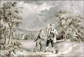 1752年、雷を伴う嵐の中で凧をあげ、凧糸の末端にワイヤーで接続したライデン瓶により雷雲の帯電を証明するという実験をしました。同時に、雷の電気はプラスとマイナスの両方の極性があることも確認したとそうです。また、避雷針の発明もフランクリンです。彼の墓には、、「この人は天上から稲妻を、暴君から王笏をもぎとった。」と刻まれているのだそうです。