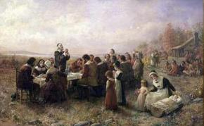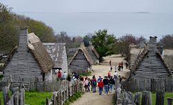 「旅の絵本の秘密」には、清教徒たち(右中央)とあります。