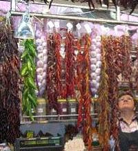 58)上からつるされている、赤いものは何でしょう。唐辛子のように見えますが・・・。魚屋で売ることもあるのでしょうか
