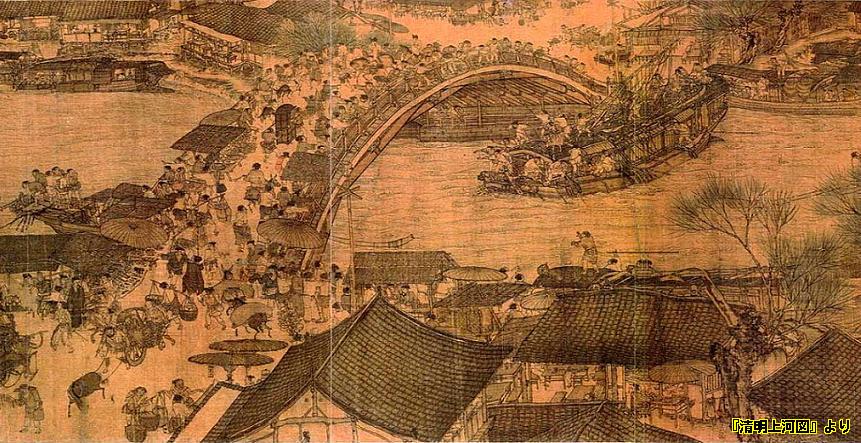 『清明上河図』のいわば、クライマックスと言っていいシーンです。もちろん安野さんは、そのままではなく、シチュエーションを変更しています。