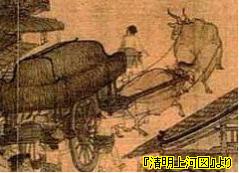 16)牛の引いている荷車があります。『清明上河図』にも右図のような牛車が出てきます。なんだか似ているように思うのですが。