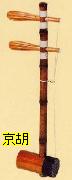 京劇で最も重要な地位を占める楽器です。京劇で使われる「胡琴(huqin)」が語源です。バイオリンに似た高音がでます。