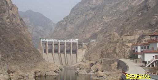 中国陝西省咸陽市(西安の北隣)にある恵渠(ジンケイキョ)のダムではないかと思います。この水利施設は鄭国渠(テイコクキョ)を継承する現代の施設とされています。