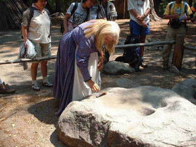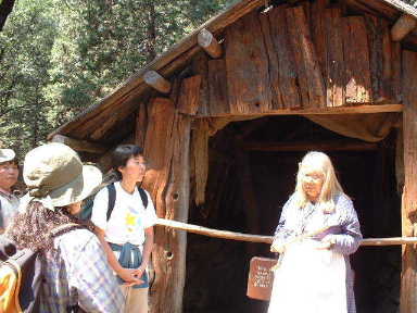 実のところ、お会いするまではわずか1時間のお話という予定だった事もあり、そんなに期待はしていませんでした。ところがお会いしてお話を聞いている内に次第に魂を揺さぶられるのを感じ出します。終わってみれば予定の倍の2時間にわたる出会でした。彼女の昼休みを奪ってしまう結果になったのですが・・・。大いに勇気づけられました。 さて、ジュリアさんはアメリカ先住民族の一人として、ヨセミテ渓谷にある博物館でレンジャーとして勤務しておられる72才のレディーです。 彼女自身の生涯がアメリカと言う国家や社会が先住民族をどのようにとらえてきたかの証の一つでもあると思いました。と同時に民族というものを考えるときに大きな指標にもなるものだと感じました。 彼女が生まれたのはサンフランシスコ近くの海岸沿いの部族だったそうで、5才くらいまで暮らしておられたとか。先住民の学校に通ったそうですが、7才の時ご両親が亡くなられて。・・・色々あったのでしょうカナダの「インディアンスクール」に通い、そこで現在のご主人であるパーカー氏と出会われたそうです。そこでは「インディアン」のことについて学ぶことはなかったそうです。クロニアン(彼女は白人という表現をとらずにこの表現を使われました)の事を学んだと言われます。その学校からは医者や弁護士などの人は出ていないそうです・・・。18才の時にパーカー氏の故郷であるヨセミテに来られます。夜ヨセミテに入ったのでその景色を見ることができなかったのですが、流れの音やにおいを感じたそうです。そして、日が昇ると共にヨセミテ渓谷はその姿を現し、彼女にとって母のように感じる事になる姿を見る事になったのです。偶然にも私が初めてヨセミテバレーを訪れた10年前も夜でした。明かりの規制がしてあるヨセミテロッジの前にバスが止まったとき、どうしてこんなところに止まるの、何か起こったのかと思ったほどでした。 まさかそこが世界的な観光地でもあるヨセミテの中心部とはとビックリもし感心したものです。そして、夜明けと共に現れた渓谷の姿に感動したものです。旅行者ですらそうだったのですから、結婚のためにやって来てあの景色にそのような出会いをするとは・・・・。 ヨセミテ渓谷の中を流れるマーセド川の川岸で結婚式を挙げて、彼の祖母と共に暮らすことになります。その祖母という人はカゴを編む名人でミュージアムにその作品が展示してあるそうです。若いジュリアは、「インディアン」は何も知らないと言われていたので「インディアン」になりたくなかったそうです。学校ではチアリーダーをしたりしていたので、別の生き方をすればアメリカンフットボールのチアリーダーになっていたかもと・・。
