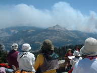 ませんから、とてものんびりした雰囲気です。しかも、絶景です。グレーシャーポイントより280mほど高いだけですが、周囲は360度さえぎるものもなく、シェラネバダ山脈が延々と見渡せ、ハーフドームやエルキャピタンそれにバレーの中も見ることができます。私の中では、ヨセミテ一番の眺望です。