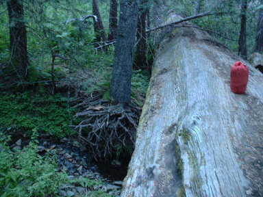 星々が輝いています。その星たちの中に黒々とセ コイアやパインのシルエットがそそり立ちます。 夜中に目を覚ますたびに、沢音と星とセコイアの シルエットです。とびきり贅沢な一夜でした。沢 の上というシチュエーションのため明け方の冷え 込みは厳しくかなりつらいものがありましたが、 むしろそのために何度も何度も目が覚めて少しず つ変化する森の様子をたっぷりと楽しめました。 早朝には沢の中にミソサザイ大の小鳥が 鳴いて います。ピシィピシィとバードコールをしてみる と、沢の中を少しずつ近づいてきます。そして、 ついにベッドにしているセコイアの下を通って反 対側から出てきます。しばらく、さえずった後で 森の中に帰ってゆきました。これを機に起きるこ とに事にしました。とても楽しい一夜の終わりです。 | ![]() |
