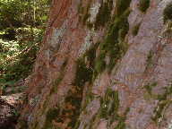 ジャイアントセコイアをさがして森の中をさまよい歩きました。沢に向かう踏み後ら しき道をたどると大きなジャイアントセコイアの下に出ました。ここで寝ようかなと 思いながら周囲を見渡すとなんだか雰囲気が違う場所があります。ひかれるままに沢 に近づいてみるとジャイアントセコイアが根こそぎ倒れて沢をまたいで橋のように なっています。セコイアの橋は沢の向こうの広場に続き、その広場にもジャイアント セコイアがそびえ立っています。橋の下の沢は、気持ちのいいリズムを刻んでいま す。ここだと思いました。あなたは今夜ここで寝るんですよと何かが、語りかけてく るように感じました。 夕食を終えるとジョシーが一つのアクティビティーを始めます。まず彼女がこの場に いられることやこの大地のあることこの森のある事への感謝の気持ちを述べます。そ れに続いて参加者のひとり一人がランダムに家族に仲間に自然にそれぞれの感謝の気 持ちを表してゆきます。それはまるでかってスエットロッジの中で体験したような深 い語りでした。 森の中でのソロ活動を前に,皆を私の見つけた特別の場所に案内しました。すでに辺 りは暗くなっていましたが、ブッシュをかき分け沢の所に行くと、横たわるジャイア ントセコイアの上に座ってもらいました。メンバーのKさんが持参の尺八を披露してく れます。沢の音と尺八の音が混然となって不思議な美しさを醸し出します。演奏が終 わるとネイチャーゲームの「スチールネスメディテーション(静寂の瞑想)」を行っ てみました。気持ちのいい瞑想の後は「ネイチャーチューニング」で場の波長にそれ ぞれの人の波長を合わせて行きます。2つの活動はこの後で行う森の中での野宿が, 怖さとの闘いでなく、楽しみであって欲しくて行ったのです。 皆がそれぞれの場所へ散っていった後 、私は特別の場所に舞い戻ります。沢を超えて 横たわるセコイアは上の部分が微妙にくぼんでいておあつらえ向きのベットです。寝 袋を広げて横になります。頭の下には沢音が気持ちよく鳴り響いています頭上には |
