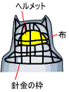 【邪神】 頭部から胸にかけて針金で形を作り、全体に布をかけます。のぞき窓を作っておきます。 |