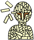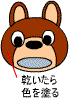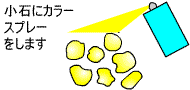 | 新聞紙で大まかな形を作ります。新聞紙をつなぐときはホッチキスで止めます。 | 新聞紙を帯びにして液体洗濯糊で形を作りながら貼っていきます。 | 和紙を小片にして貼っていき、乾かした後、絵の具などで、色をつけま す。 |
