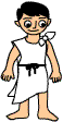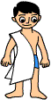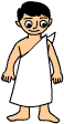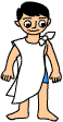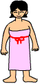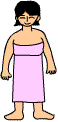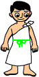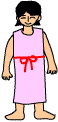 | ・布の中央に頭が入る穴あける | ・穴に頭を通す | ・腰を紐で結ぶ | ・片方の腕の下で巻く | ・胸の下を紐で結ぶ。 | ・上の布をたるませ紐を隠す |