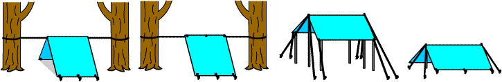 | 【木の枝を利用して】 | 【ペグ】 | 【シートを結ぶ】 | 【ペグを結ぶ】 |