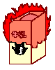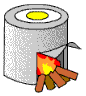 | パンの中央に切れ込みをいれます。パンにキャベツとソーセージをはさみ、好みによってゆで卵をはさんだりマヨネーズかケチャップをかけます。 | しわをつけたアルミ箔をパンに三重位巻き、両側は軽く折り曲げておきます。 | アルミ箔で巻いたパンをよく乾燥した牛乳パックにいれます。 | 牛乳パックのうえに火をつけ、全部燃えたらできあがり。 |