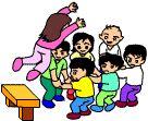 A 残りのメンバーは2列に向かい合って並び、向かい合ってる人と両手をつなぎ、手のベッドを作ります。