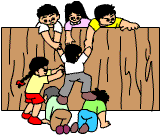みんなで協力して高い壁を乗り越えます。