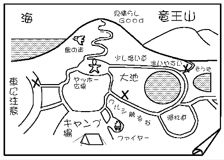 キャンプ場の周辺を探検して、発見したことを地図に表します。
