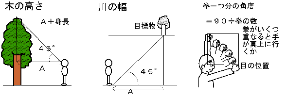 目測する(目標が45度に見えるときのAの距離を測ります)