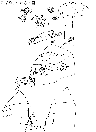 今年の夏は暑かった。そしてそれ以上にあついわんぱくキャンプだった。みんなで集めた薪でご飯作り。熱い火に負けずおいしいご飯を作ったね。仲間作り。友達作りのゲーム、友情の火を燃やしたね。タヌキたちと一緒のお祭り、心も体も熱く燃えたね。そして、トトロとヒコウセキを探して暑い山道を歩いたね。やっと見つけたヒコウセキ。タヌキさん達と一緒に、私たちも守っていこうね。