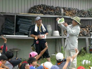 子どもたちがとっても元気で、圧倒されました。ただ、まとめるのがたいへんで、みんな同時に話しかけるので 聖徳太子になった気分でした。子どもたちは言われなくても自分で考え、想像し、豊かな発想力を持って、自然とふれあっている姿を見ると、この子どもたちの将来が楽しみな気分です。その少しの時間を過ごせたこと、とてもうれしく思います。ありがとうございました。